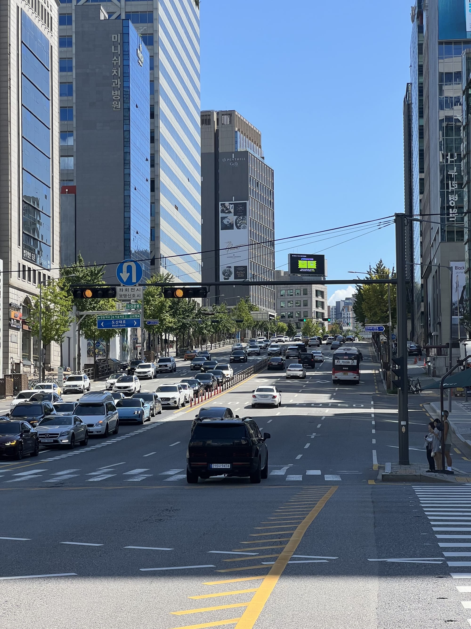 Le lendemain, dimanche 21 septembre, je suis allé visiter Séoul, et en particulier le quartier Gangnam, un des endroits les plus dynamique et moderne de la ville. Il y a beaucoup de boutiques de luxe dans ce quartier (en particulier des marques françaises) et il y a également beaucoup de touristes.
